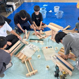 9月には、実際の建造物を見学し簡単な実測をした後、制作にあたっては、学生相互に様々な案を持ち寄り議論を進めています。