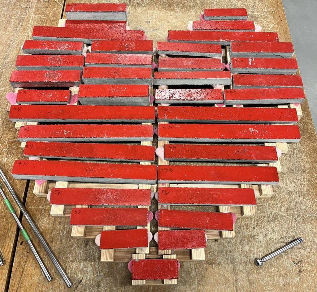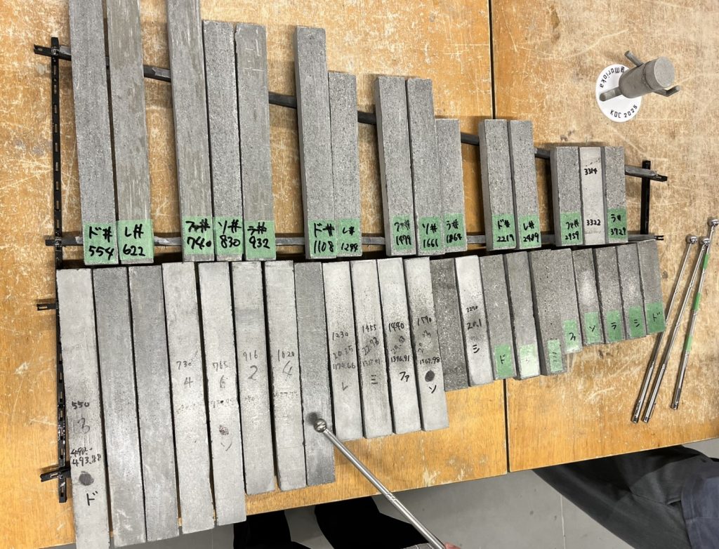名城大学からはAチームとBチームの2チームが出場し、コンクリートマリンバを作製しました。響きを高めるためにパルハンマーを採用したり、音階に近い周波数を出すために厚みや幅を微調整するなど工夫を重ねました。