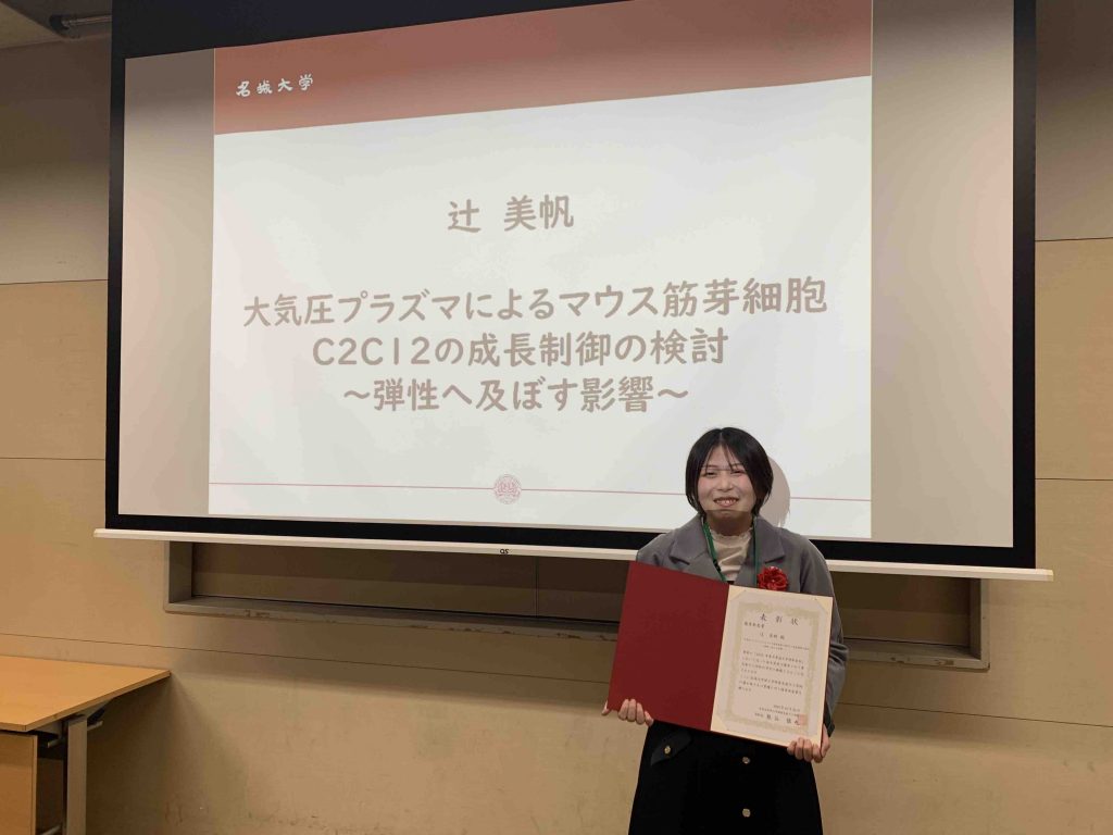“Growth promotion of murine myoblast cells C2C12 by non-thermal atmospheric pressure plasma exposure“, Takeru Kobayashi, Miho Tsuji, Shinya Kumagai